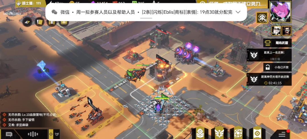 时间到了第二天下午,此时我们已经展开了向对方人员的多次进攻。对方人员防御不暇,被拆除多座防御建筑。