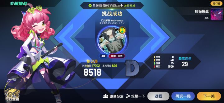 专辑挑战里的终极挑战,如果乙女解剖有人过不去(good不超过20个),你们可以试试这个方法