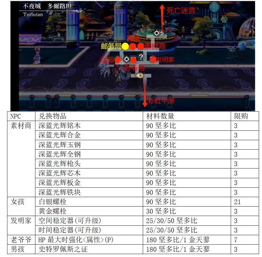 副本交换物品:晶属性上级灵晶(P)*8,HP最大时强化<属性>(P)灵晶*7,千年树防具*3,宠物装备*3,卡姆拉拿珠VC灵晶*3,黄金螺栓*3,白银螺栓,深蓝材料3*8套,硬珠(无限)