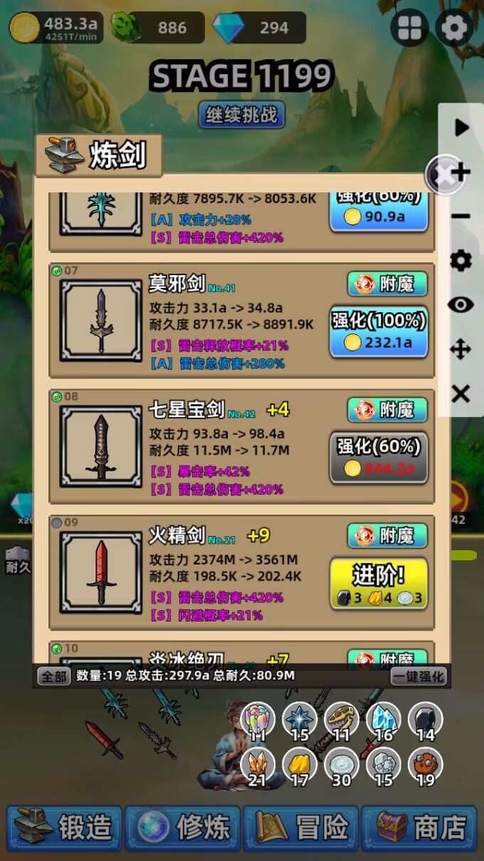 目前剑的数量是19个,不用着急,慢慢来就是了,