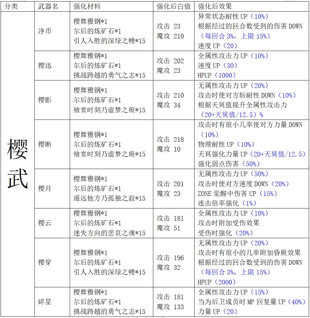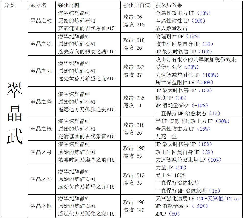 旧武器二次强化:翠晶武系列、樱武系列、古西武系列