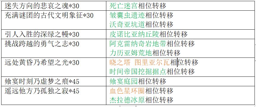 可刷取强化材料:绿色字体表示可以野营转天气,橙色字体表示不可以。