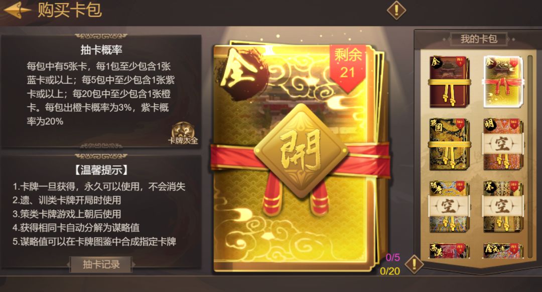 ◆活动期间,在全卡包购买界面,将可以购买全卡包的升级款「炽金全卡包」(维持原价不变),炽金卡包享有全卡包相同的卡池,更内藏玄机,在开启卡包时,将可能掉落惊喜道具。