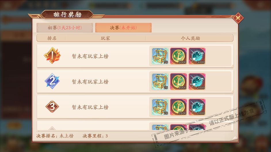 排行榜分为初赛排行和决赛排行,初赛排行在第2天24点结束,决赛排行在第3天24点结束,有意争夺排名奖励的少年请注意活动时间。