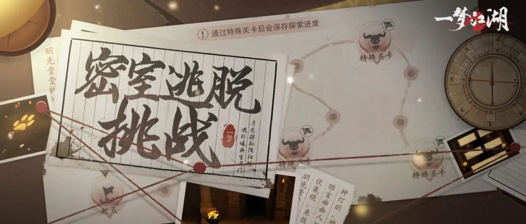 本更新后,“奇门勘秘”即将登录江湖!足智多谋的少侠能否穿越一道道正确的门,成功逃脱密室呢?我们拭目以待!