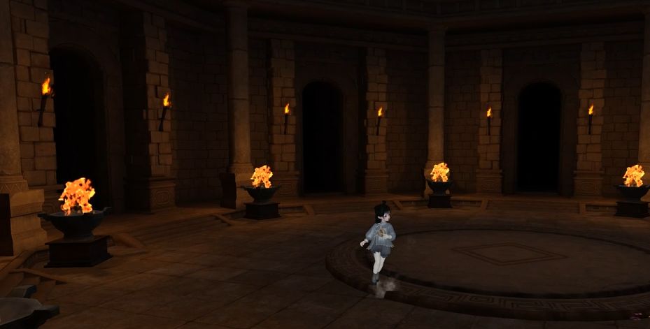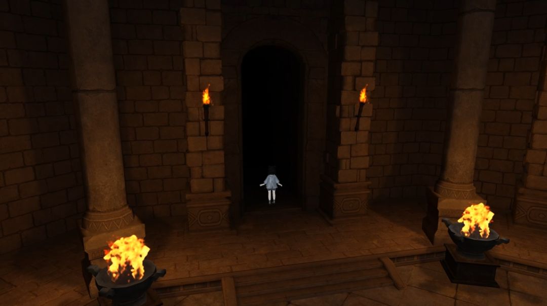 偌大的厅堂,只听到火光细微的爆鸣,此外听不到任何声响。少侠不禁想:当真无人造访过此地吗?直到某刻,少侠发现了地上隐约可见的脚印,没时间解释了,趁他溜走之前,跟上它!