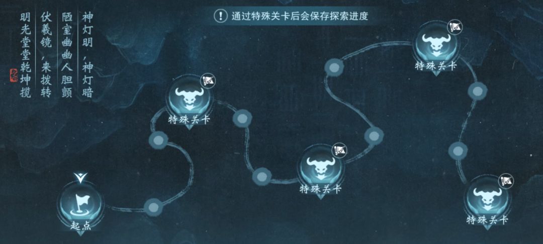 本周特殊关卡的题型为“石灯谜题”!只见厅堂里铜镜凌乱树立着,少侠唯有理清光的来去,搬动铜镜,让光线在堂中折返,直至足够多的光线穿越石灯。灯明之时,路自然显现,少侠能否点亮石灯,照亮暗门呢?顺利通过本关后,当前的关卡进度会保存~在破解谜题后,正确的门会发光!不过,破解谜题前进入任何一个门都会失败。