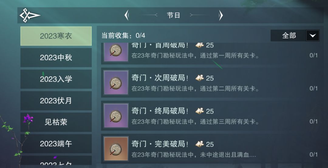 每周排行榜排名前30的少侠,在排行榜结算时,将获得限定称谓“寻龙分金看缠山”。三周排行榜独立结算,少侠有3次机会获得此称谓噢。每周五“奇门勘秘”将会刷新特殊谜题,为少侠带来更多拨云见日的乐趣~同时还有更多节日逸谭与成就,等待你的解锁,一起感受解密的畅快ヽ( ̄ω ̄( ̄ω ̄〃)ゝ
