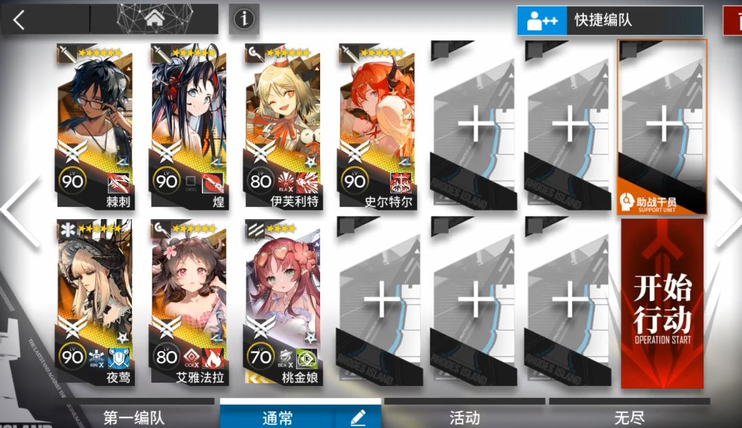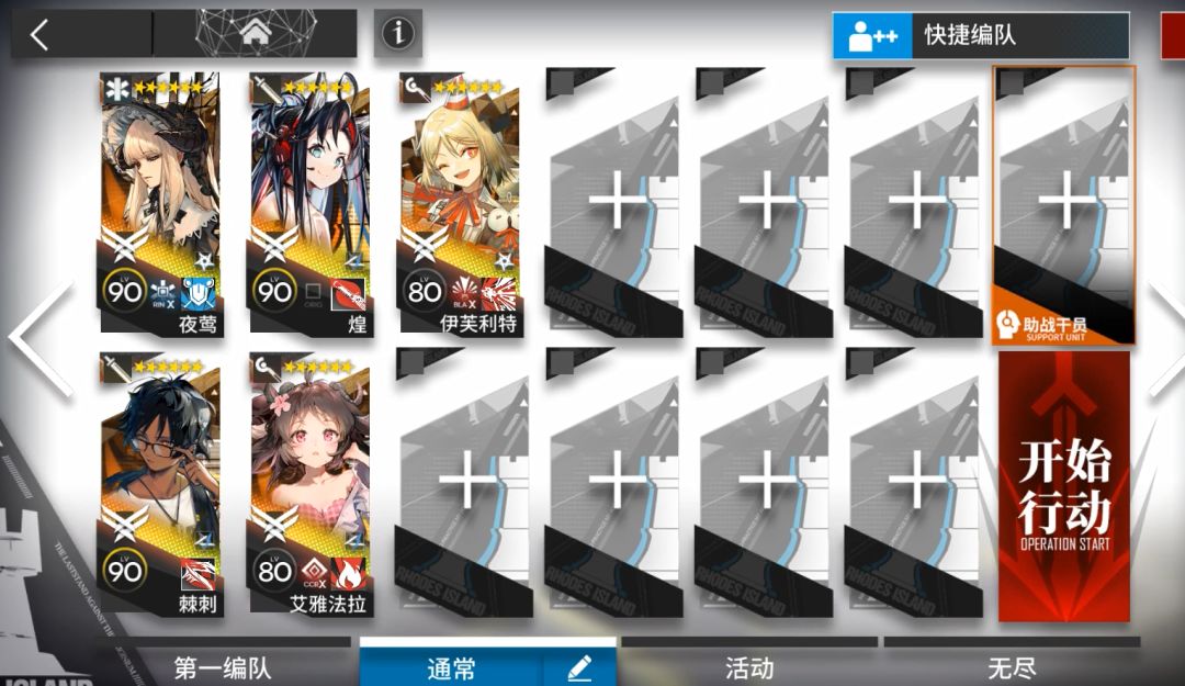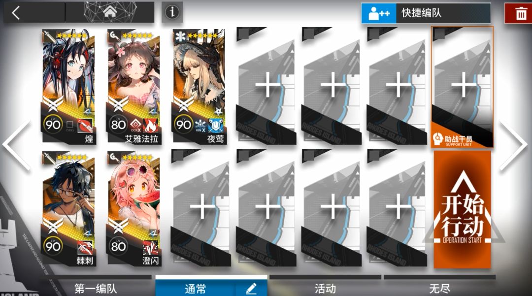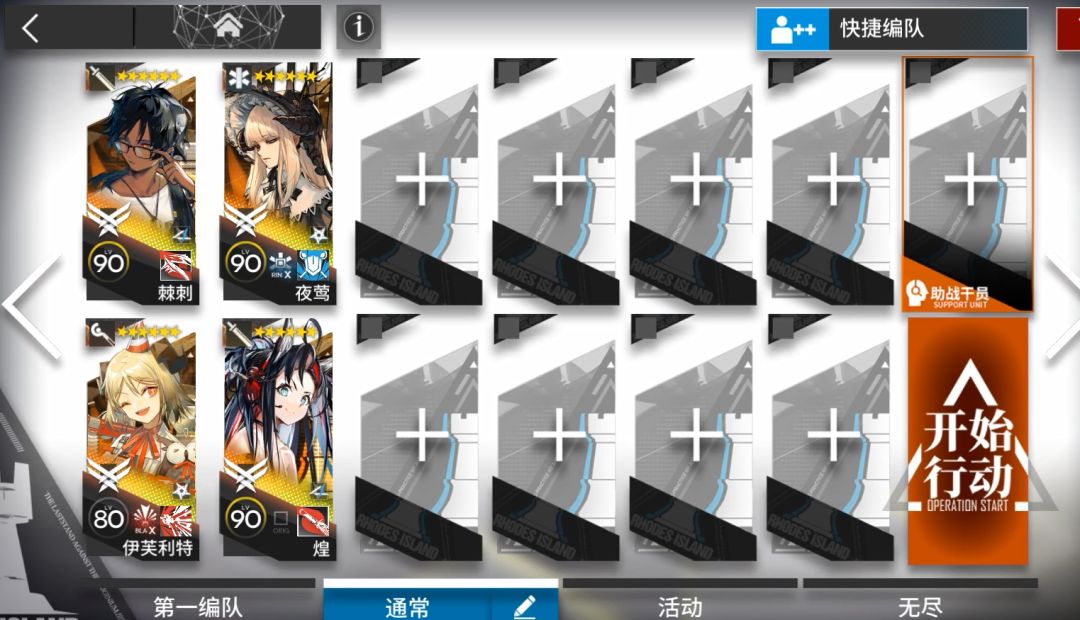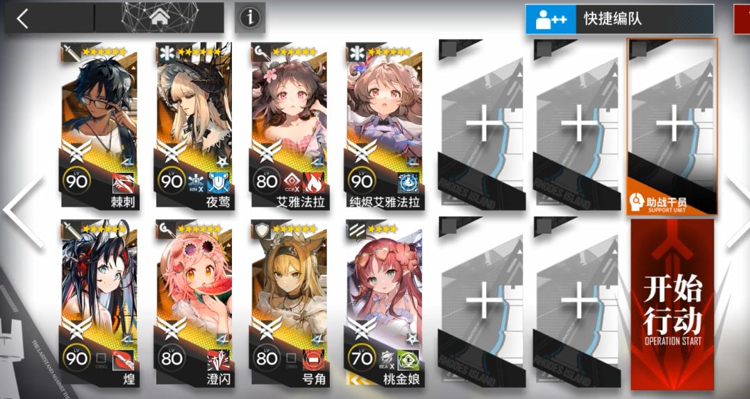 突袭没有任务,直接打。依次部署棘刺朝左,夜莺朝下,煌朝左,小刻朝下(可换其他术士但是不建议粉毛,会被对面反伤打死),小羊,流明,星熊朝左挂机即可。