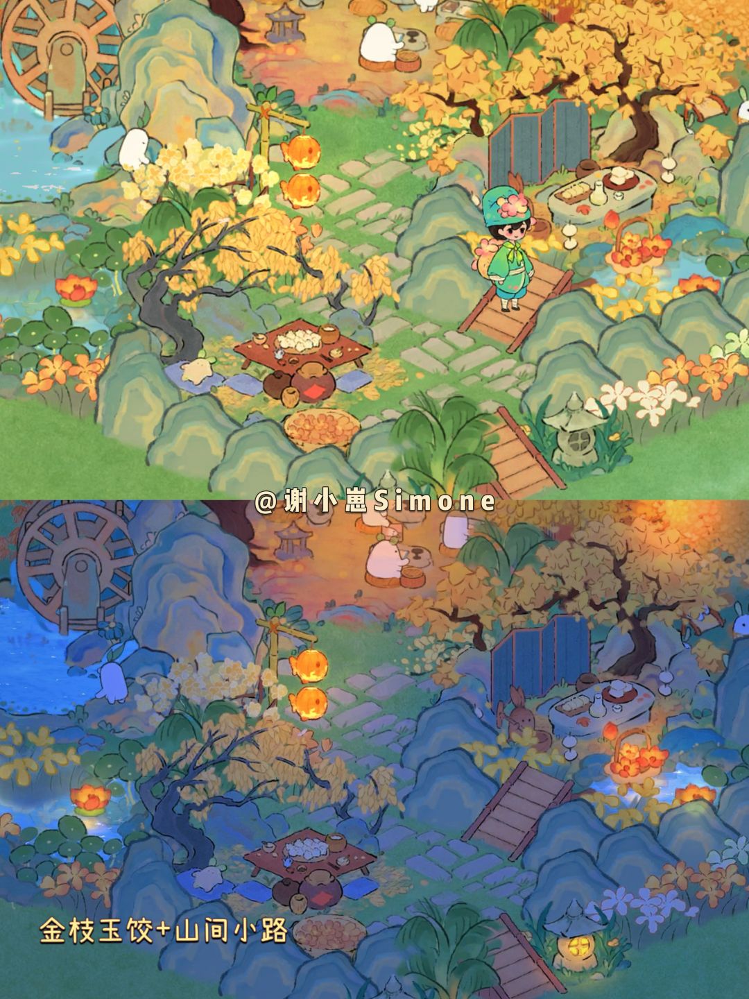 立冬节气建筑「金枝玉饺」的拓展布局,6个建筑组合成山野秋色。在去上学or打萝卜牌的那条小路上,有两家非常值得打卡的山间小食堂。