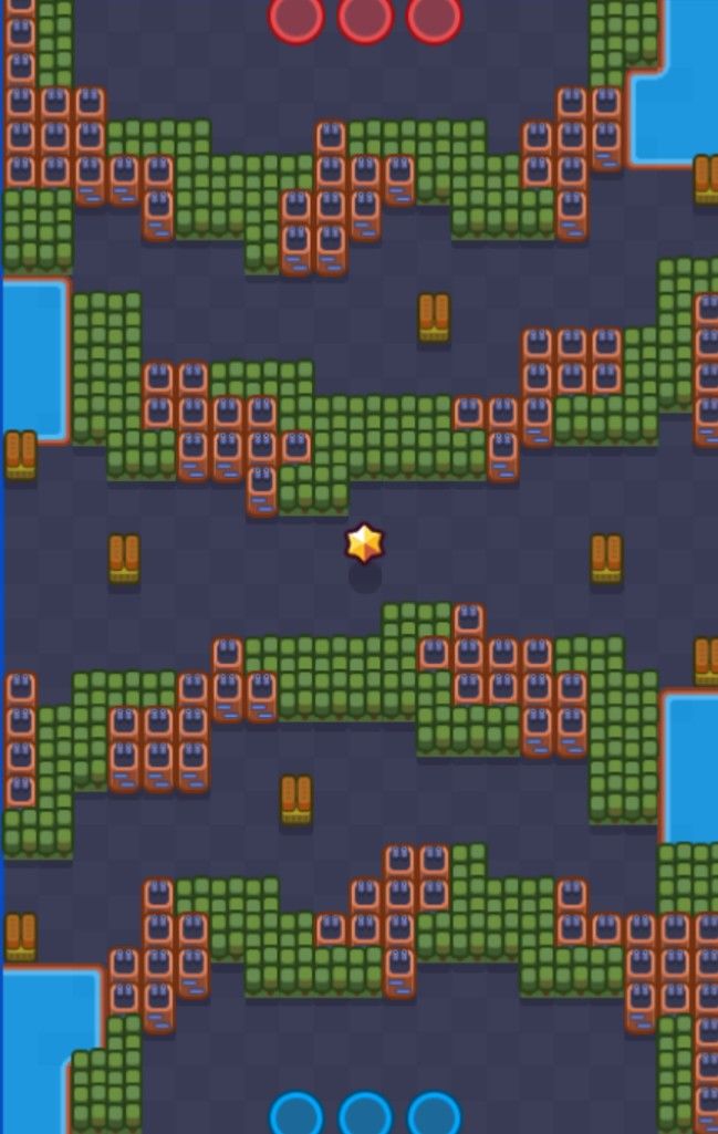 只需要铺两块草丛将下方右侧的草丛与上方中间的草丛相连,使罗莎能够隐秘过渡到上阶段的草丛中。这样一来,这一片草丛罗莎就能够完全控制,有效地挤压了敌方的活动范围。同时上方左右两侧草丛,只要有敌方英雄露头,罗莎可以快速扑杀抢星