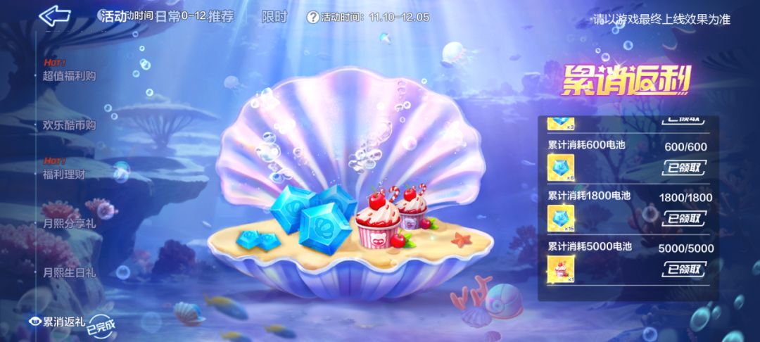 潮涨潮落,星月漫天,随水之灵一同到来的还有海中的珍宝!11月10日起,累消返礼活动开启,活动期间,消耗指定数量电池即可领取水之灵星愿结晶,更有精美的突破点心,可用于飞宠突破噢~车友们千万不要忘记领取!