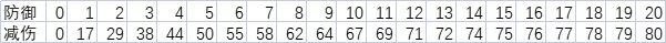 在这贴一个前20点防御的减伤,让大家有个直观的概念。