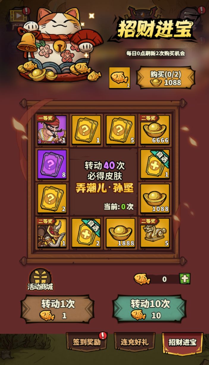 4、活动二·招财进宝,活动期间可使用【小金鱼】转动招财猫转盘,获取大量稀有奖励。