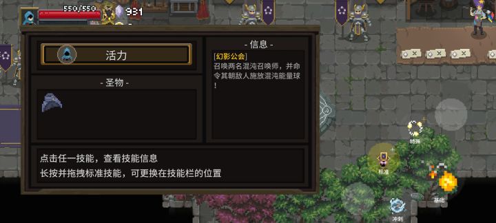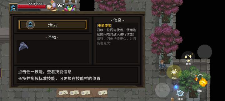 中途的技能有召唤可以买召唤,没有就尽量买范围伤害的,反正都是99伤害。圣物随意买,不要增加伤害的。买减cd,加血量之类的随意。