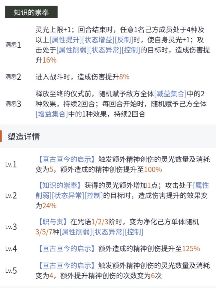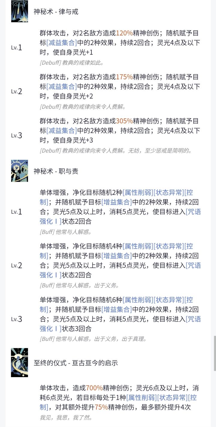 其中前4种可以提高输出,尤其是减爆防,满塑牙仙都只减25%暴防。而后两种可以提高生存能力,两回合30%的创伤减免,这数值给的也是很大方了。另外,后3种都属于状态异常,可以触发夜色亵渎者