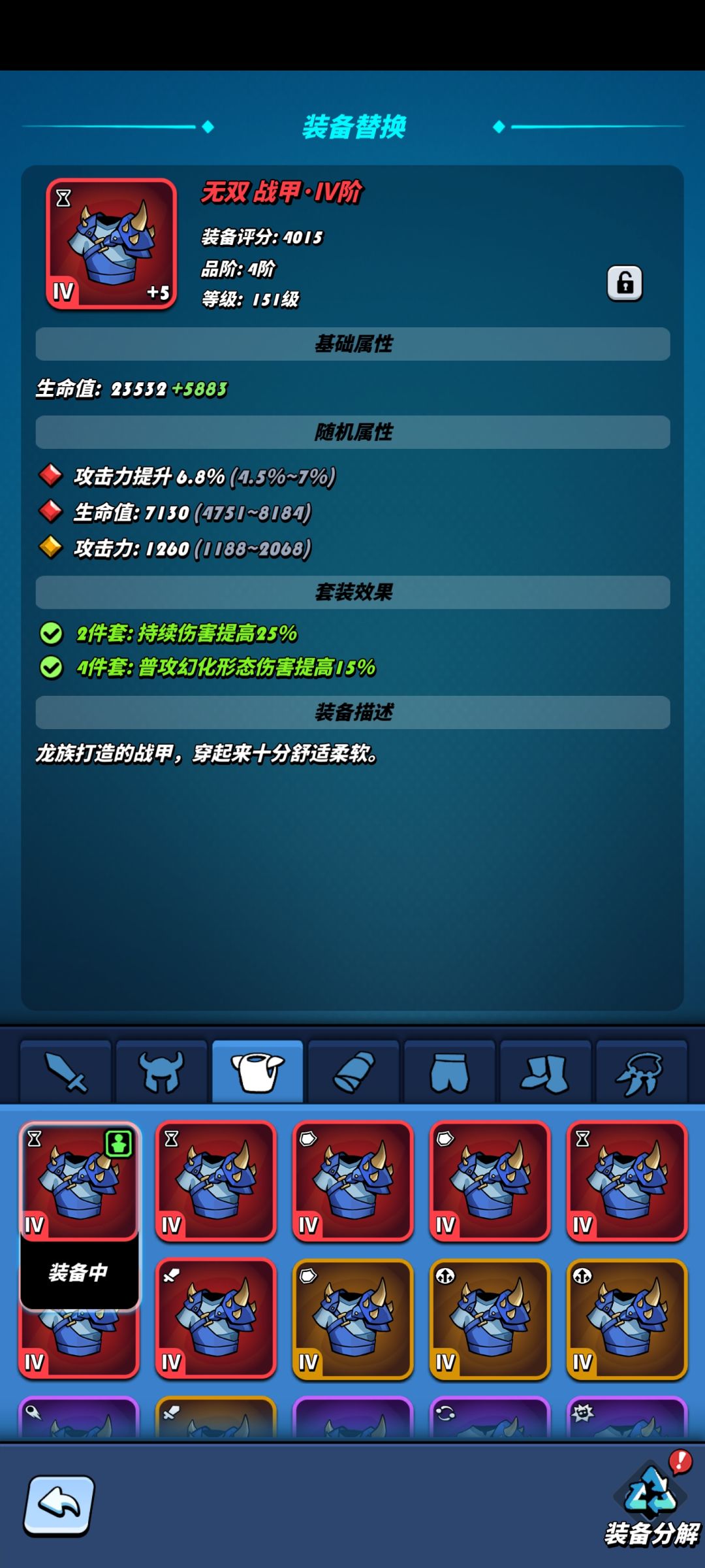 对应的龙装备对应的套装会组成非常不错的效果,能获得高额的百分比增伤,而套装则分成两件套和四件套。