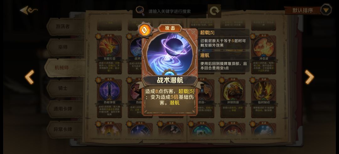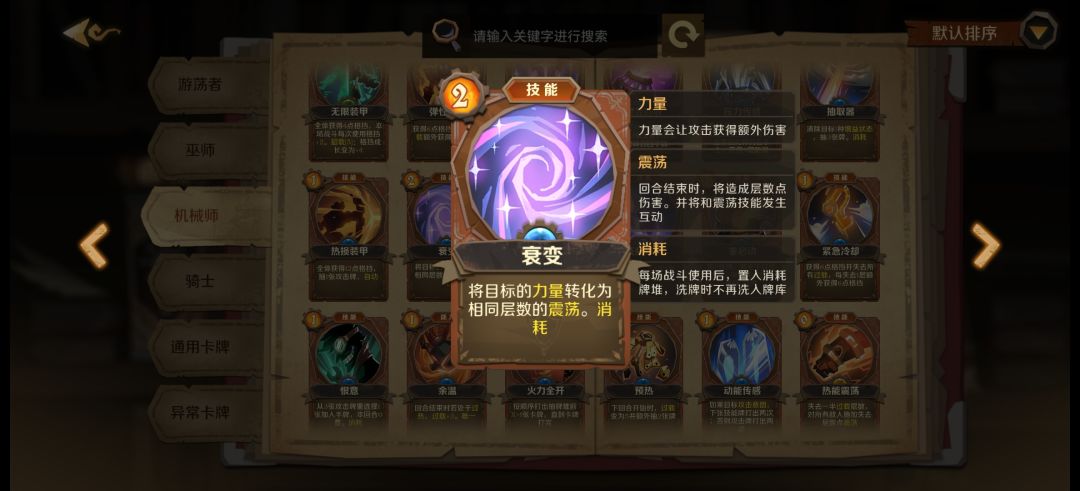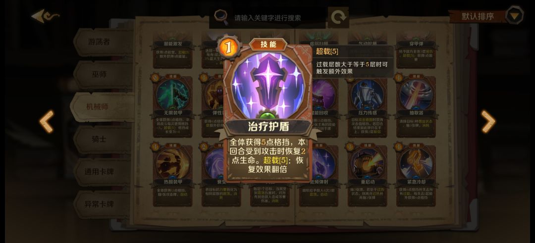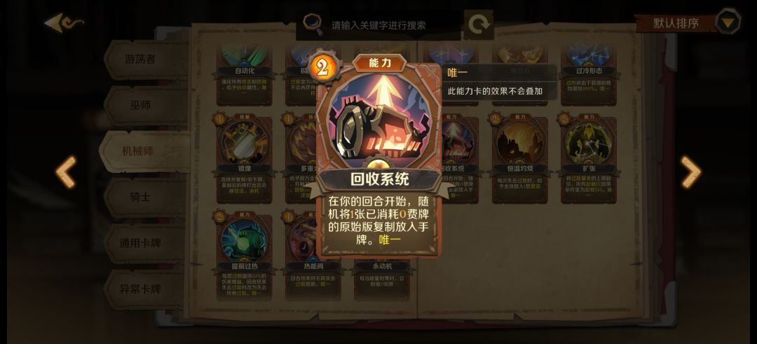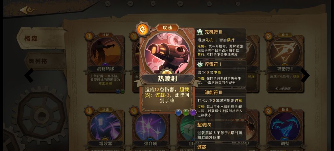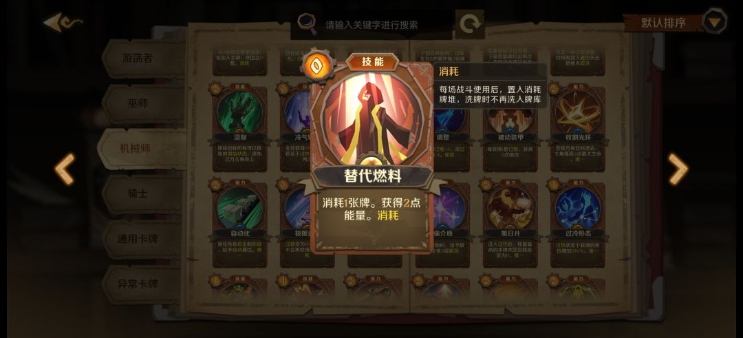 最喜欢的一张机械师职业牌上限贼高,需要打能量符减费。很多不错的技能牌都是消耗的。可以给其他牌打消耗符