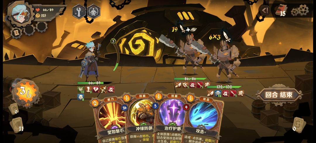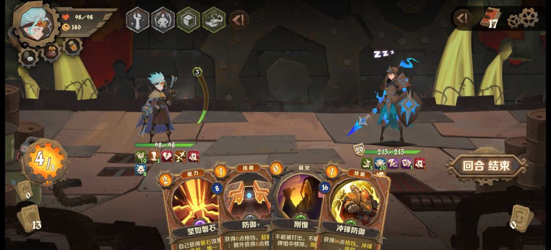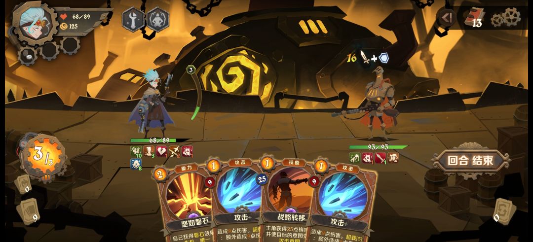 打上先机符跟保留符,敌人上状态或者恶心的debuff时可以强行打断。前期初始3费,专属卡牌+战略有大概率能首回合无伤,机械师只有治疗盾可以回血,这很重要