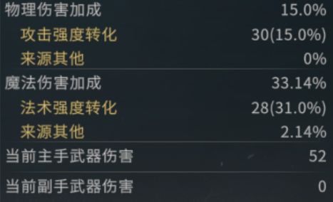 主/副手武器伤害:显示目前武器伤害。(有直接加武器伤害词条,要综合攻击速度考虑,盗贼需求度较高,蛮子一般。)