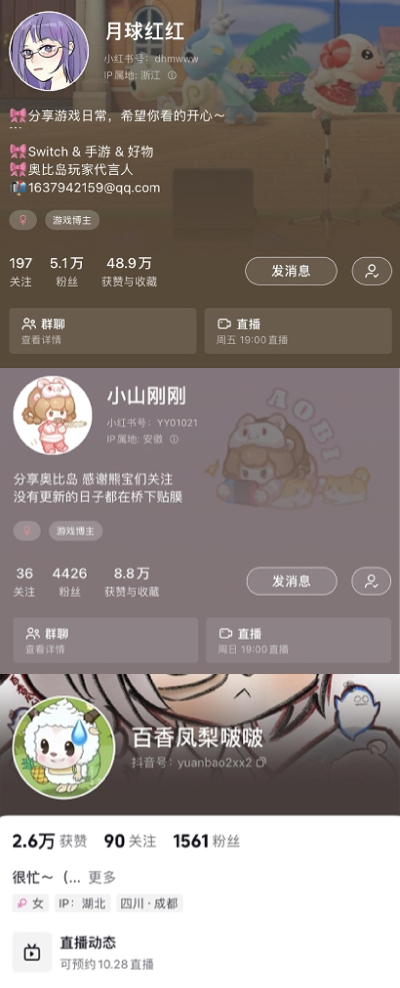 周末直播秀,玩转奥比岛!奥比玩家主播团队日渐壮大,以后会有更多小奥比和大家直播玩游戏抽奖。本周共有3位主播——我们的月球红红、凤梨和小刚~