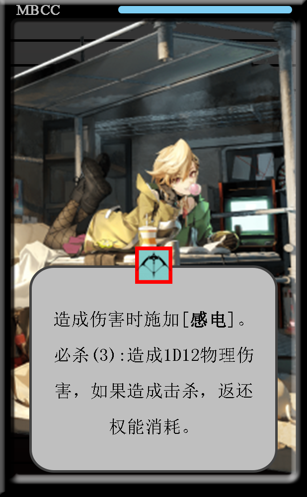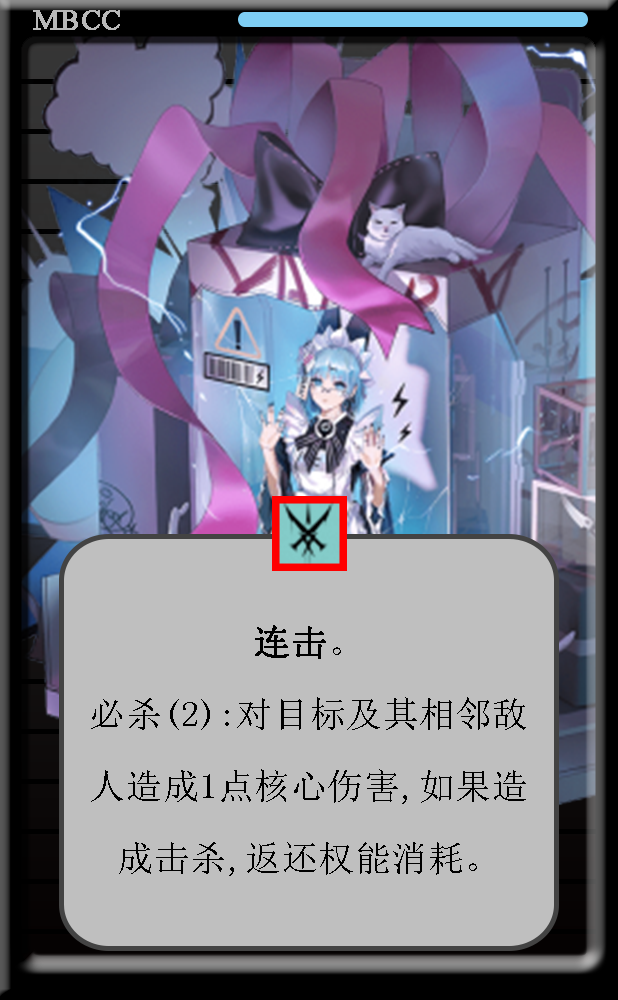 支援:其他友方禁闭者进行阻挡时,可以消耗行动次数发动追加攻击。