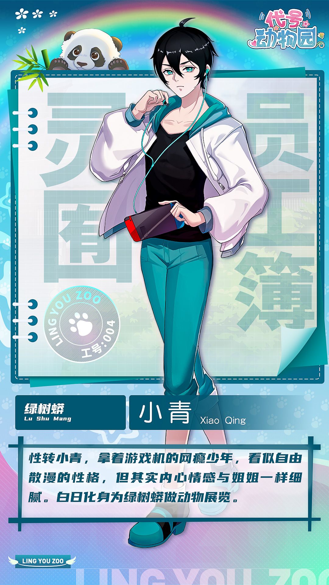 性转小青,喜欢玩游戏的网瘾少年,为了避免一些不必要的麻烦,而选择了男儿身。看似自由散漫的性格,但其实内心情感与姐姐一样细腻,白日化身为绿树蟒和姐姐一起在园内做动物展览。因法海的原因,他一直对园内的光头义工保持着戒心。后与退役偶像肖荣深陷情感纠纷之中。
