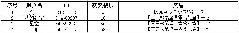 2. 活动结束后,官方工作人员会对活动期间所有有效楼层参与进行随机抽选,抽到的楼层将获得活动奖励;
