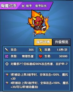 五弓:指骷髅射手+4个任意射手 组成弓箭的羁绊。(弓箭手是物理攻击,上阵3射手阵容全体攻击+120%,魔抗+20;上阵5射手阵容全体攻击+180%,魔抗+35,可与1阶被动叠加)