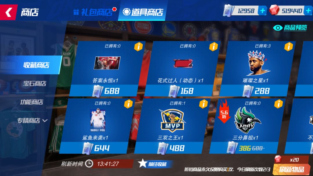 双十一篮球大师重磅上新!开放全新商店——【收藏商店】,各位经理人可以使用【点券】购买各类外显,集齐外显套装,获得攻防奖励!如果没有心仪的外显道具,经理人可以使用【宝石】进行刷新。