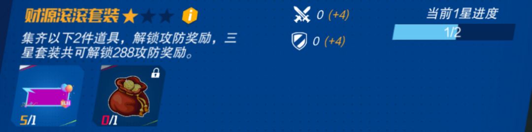 集齐两套外显套装可以获得480攻防加成,集齐三套外显套装可以获得1000攻防加成,三星套装共可解锁1512攻防奖励!