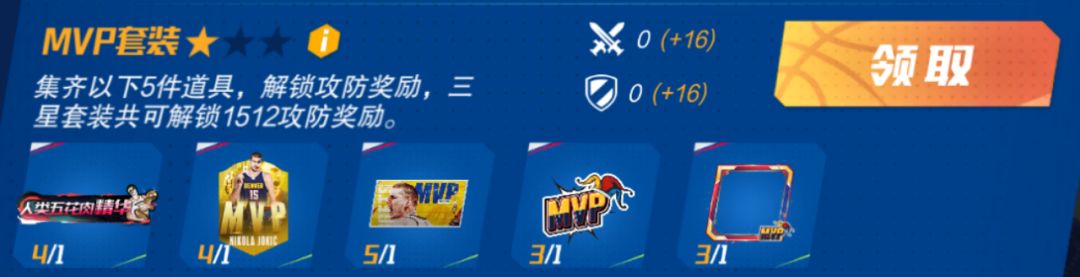 集齐一套【MVP套装】系列5件套外显套装,还可额外获得32攻防加成。
