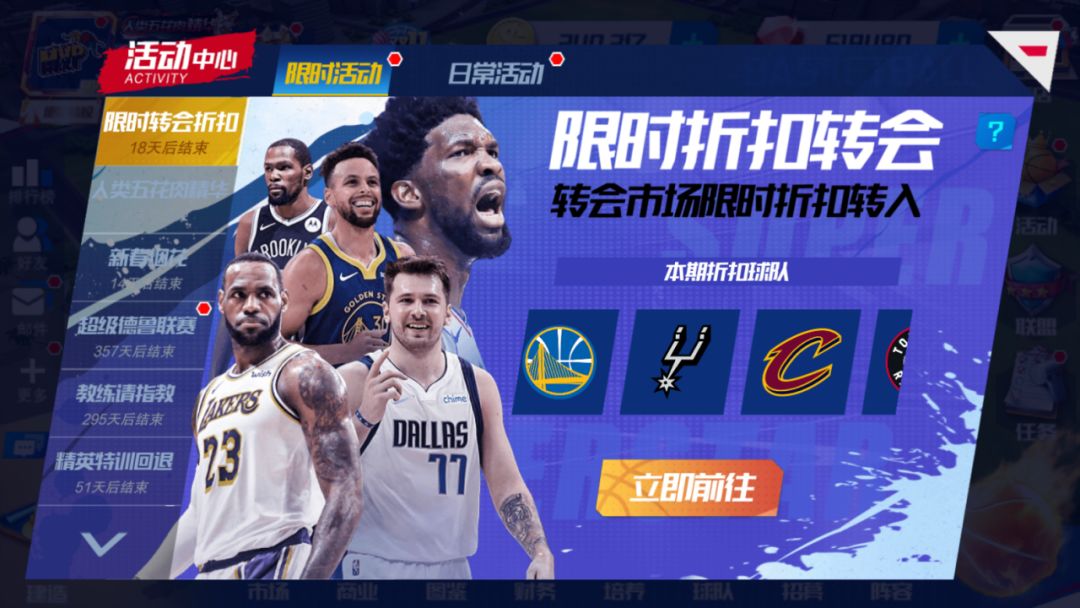 转会市场所有球队开放限时折扣转队,快趁现在,放肆转入想要的球员吧!