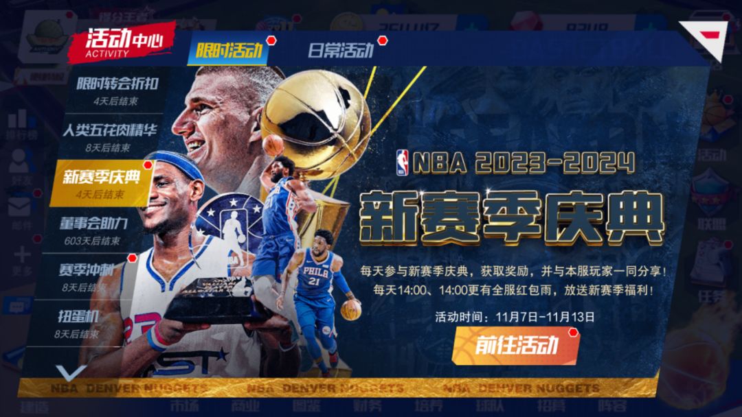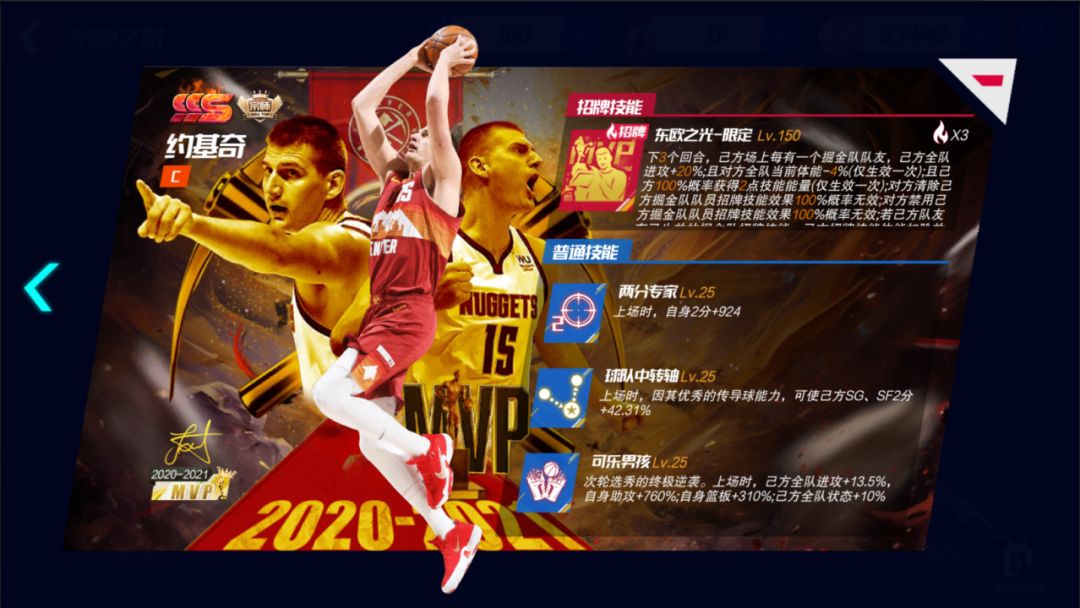 全新卡池!活动期间,可使用【点券】在【MVP招募】池中,招募MVP约基奇。卡池中包含球场状态道具:主场球衣。