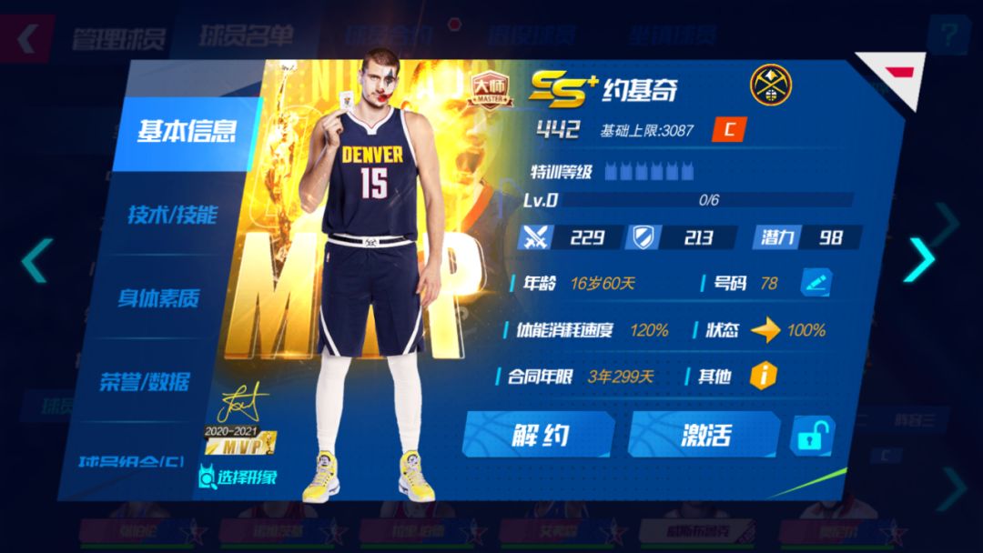 约基奇(MVP) 基础能力上限:3087