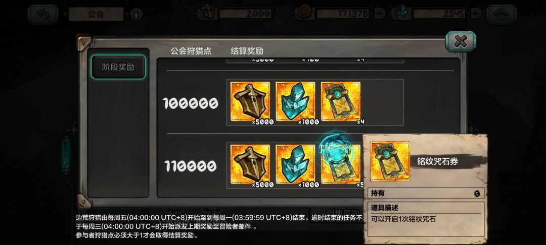 活动奖励:个人打完十波奖励贡献值500,第二次就只有两点,工会奖励还行,够11万奖励五次抽奖