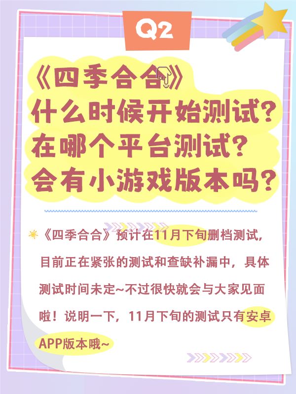 Q2 《四季合合》什么时候开始测试?在哪个平台测试?