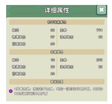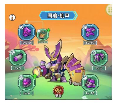 2.玩法说明1、机甲功能能够让您在战斗中变身成为各种强大的机甲,获得超强的属性和特殊技能!2、同一类型套装穿戴4件或以上时,才能在局内变身机甲!3、机甲装备品质越高,技能效果越强4、强化槽位可以提升机甲装备的装备和收藏属性,大家应该都知道收藏属性有多重要!5、且每个槽位每10级将会提供给您一个研究点数!6、花费研究点数即可升级强大的研究效果,给您的机甲带来更强的效果!