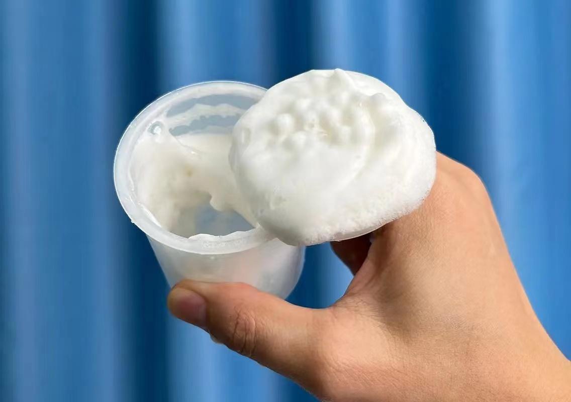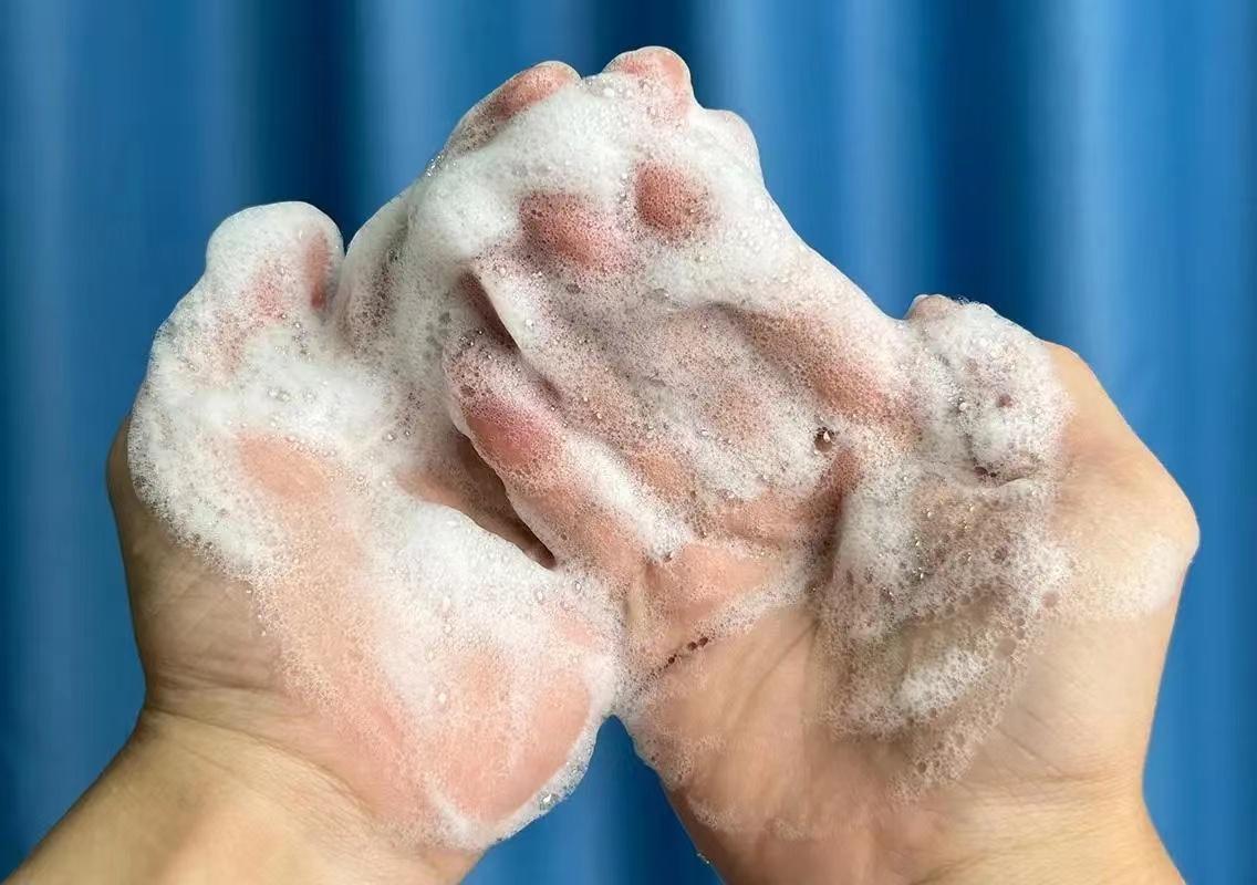 加水徒手揉搓,容易起泡,泡沫丰富绵密。