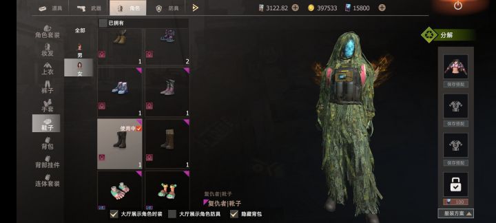 本次新更新增加的快速换装功能,首先要在仓库大厅内右边保存当前的搭配,初始只有一格,下面三个分别需要金币,贸易,点券大家量力而行,我觉得最好的搭配就是一套自己喜欢的,第二套最为推荐“老六套装”在趴下不动时极难被发现,可以打敌人一个出其不意,第三套有“能力”的可以搭配一套飞行角色在前期开荒时作用极大,使用方法也很简单,以后在家或者出门带个储物室,点开储物箱下面就会显示已经保存的搭配,点击即可快速换上,是不是很实用呢大家快去试一试吧