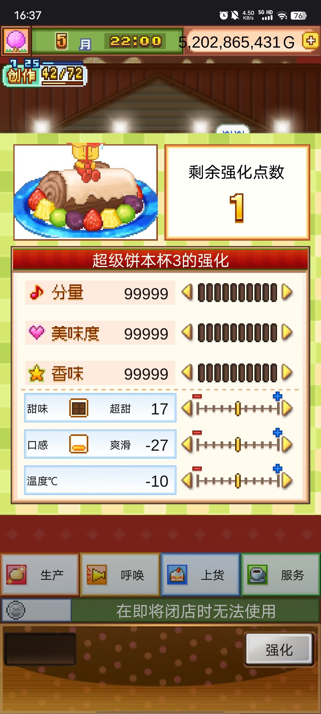 这四个大赛,重点是提高蛋糕独创性,满足比赛各项要求(食材系列,甜味,口感,温度)。贩露获取的道具,是最主要的改变食材属性的方式。 简而言之,前中期比赛靠挂机,后期比赛靠贩露道具改属性。