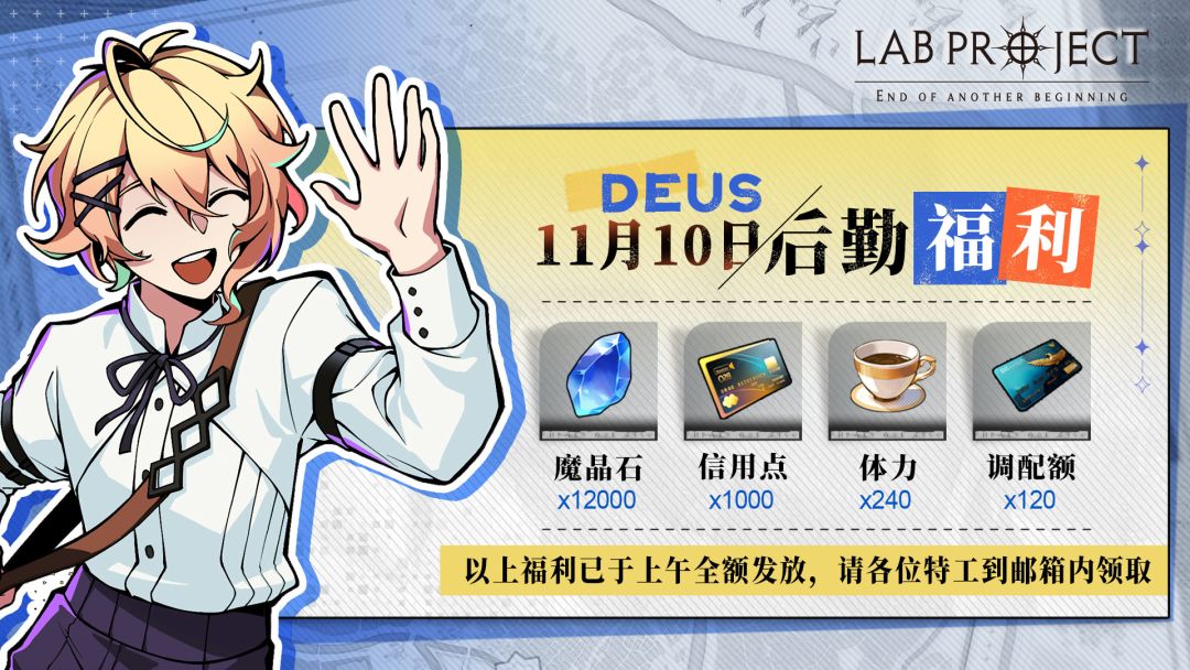 DEUS后勤福利已于上午发送,请各位特工注意游戏内查收!