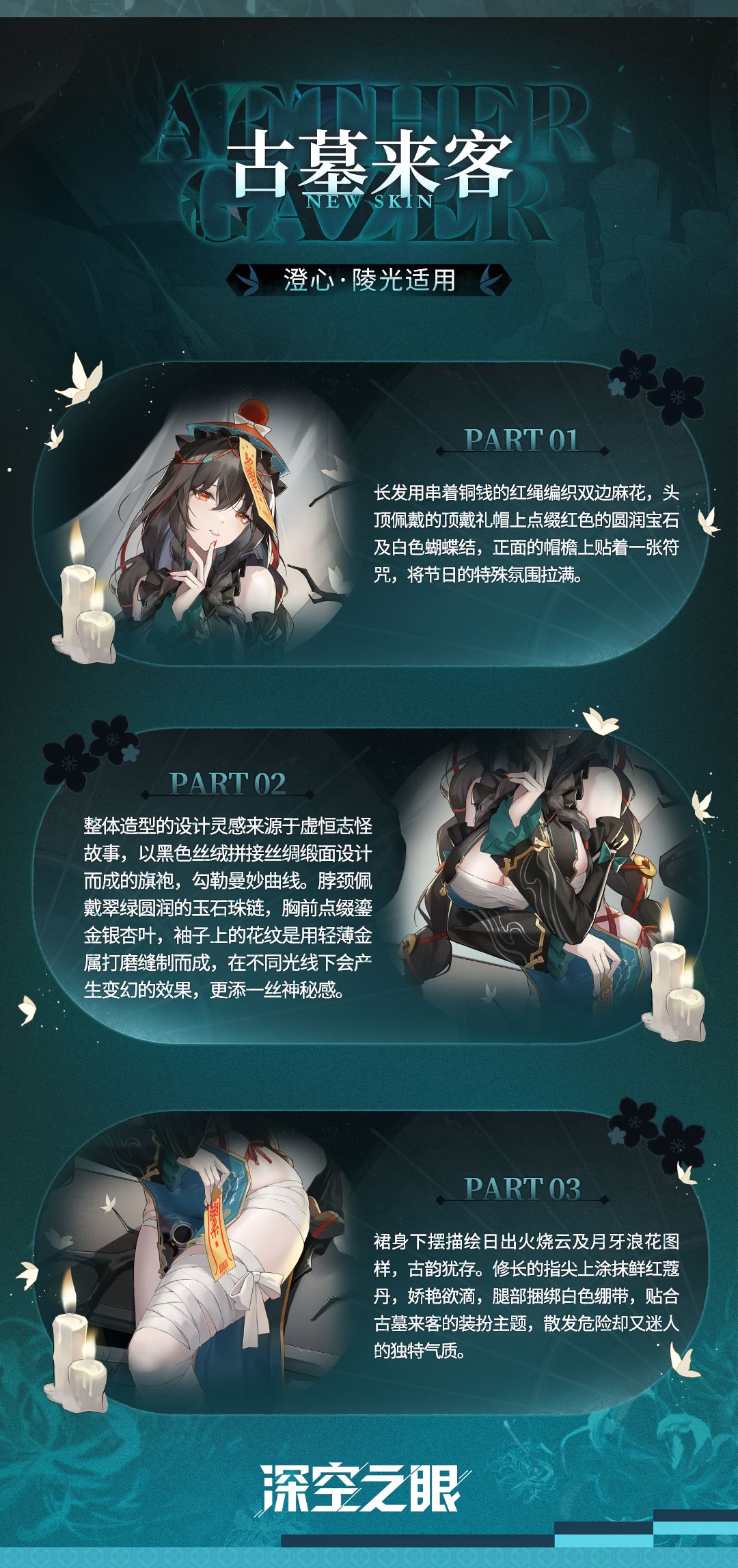 澄心·陵光全新换装「古墓来客」现已登场!额外内容「朱阁幽话」同步上架换装商店,11月9日-11月16日05:00可享限时折扣。