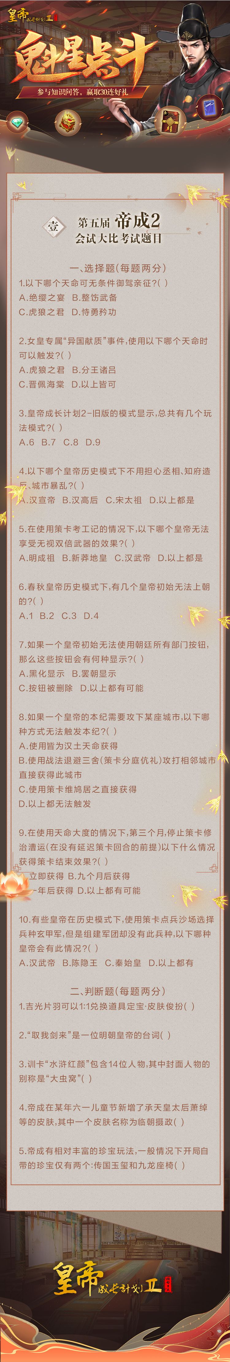 今日在此也诚邀诸位老爷一同参与此次的知识问答,让我们一起看看接下来的试卷题目吧!