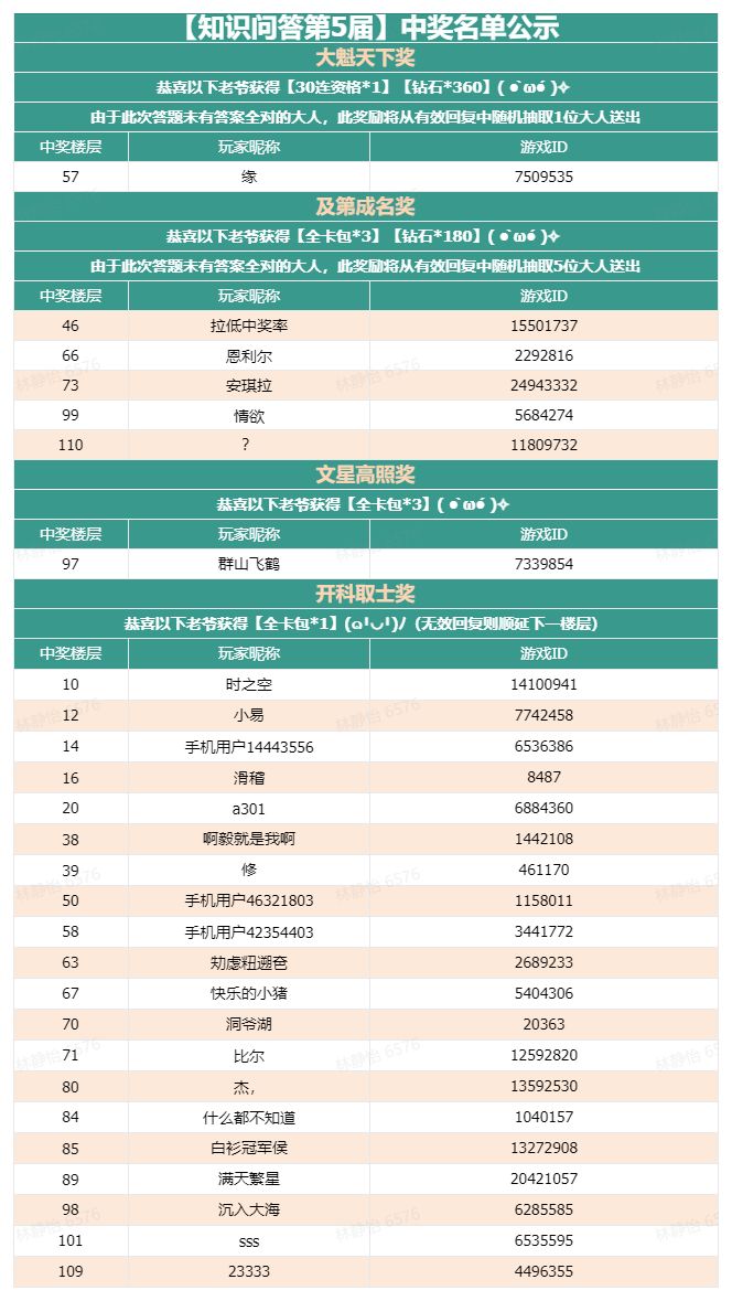 【全对答案+游戏ID】:从有效回复中随机抽取5位答案全对的大人送出【全卡包*3】【钻石*180】