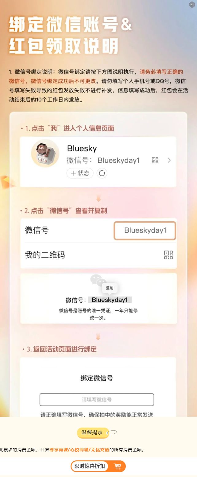获得红包后,请在下方绑定按钮绑定发放红包的指定微信号,可点击“查看领取红包指引”按钮查看相关领红包流程。