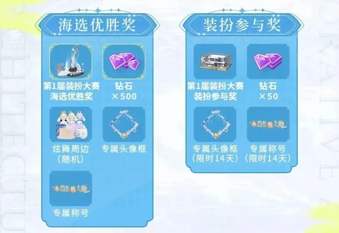 本周福利活动合辑小岛装扮大赛复赛投票明天开启