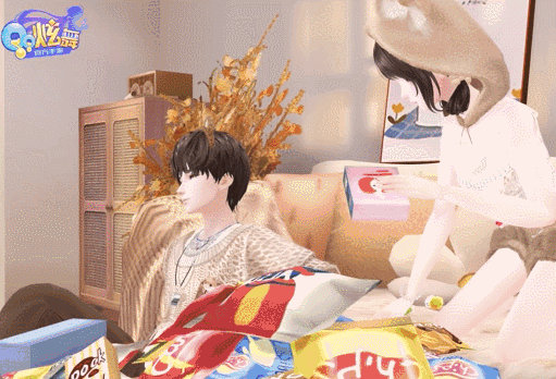 柔软沙发上堆满着零食,可爱的仓鼠冒头而出,下一秒化身俊朗少年~