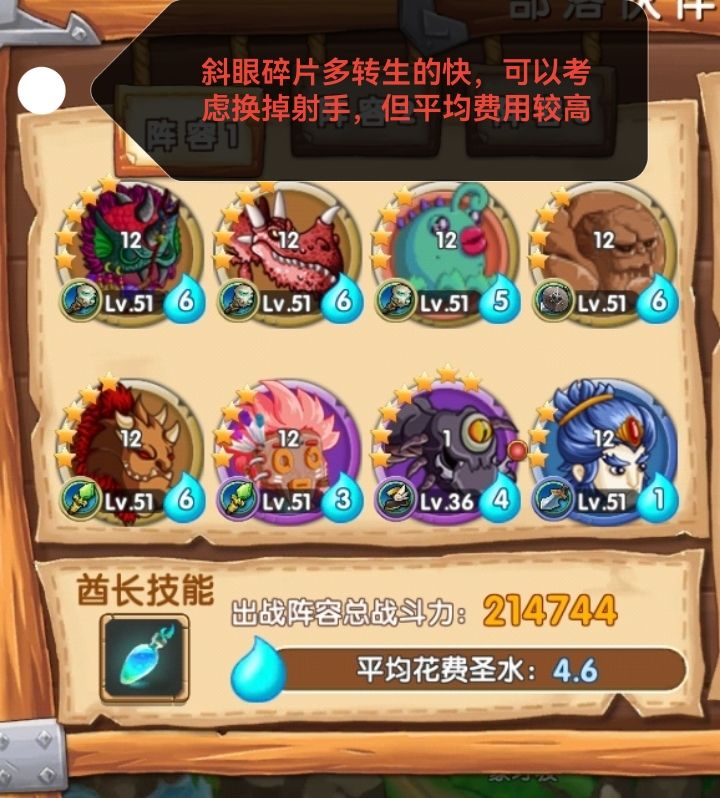 斜眼碎片比较容易抽出来,如果升星快转生快,就可以替换掉射手。射手主要是费用低过牌,但前期成长慢,可以用成长快的斜眼先代替使用,但也导致费用更高。但可以一个顶两个用的情况下,也是可以接受的。如图11