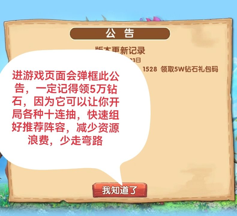 最后图9很重要,按照公告指引领取5万钻,开局十连抽快速组好阵容。这样不浪费资源,前期体力比较紧张,快速进化到12阶才能推的动图,刷得动BOSS。